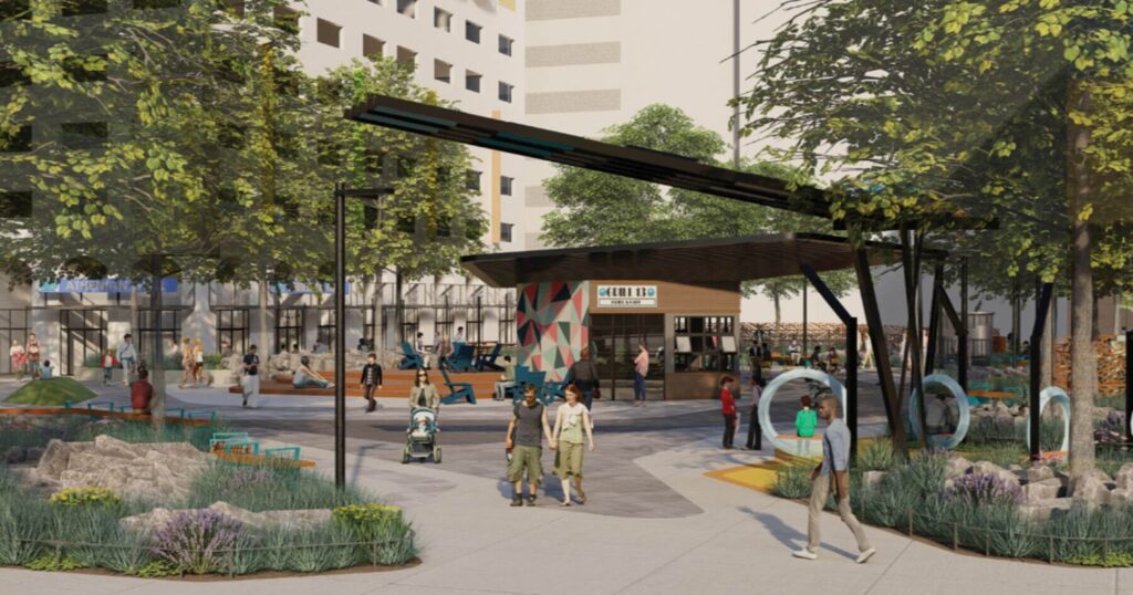 Phoenix Park is right next to the Downtown Public Library; the park went through an extensive renovation and reopened in September of 2025. There is a stage for a band,